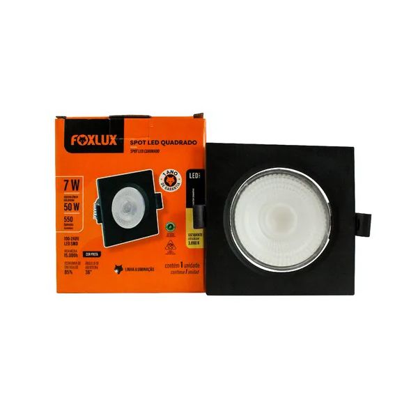 Spot Led de Embutir Quadrado Preto 7W Bivolt 6500K Foxlux 90.710